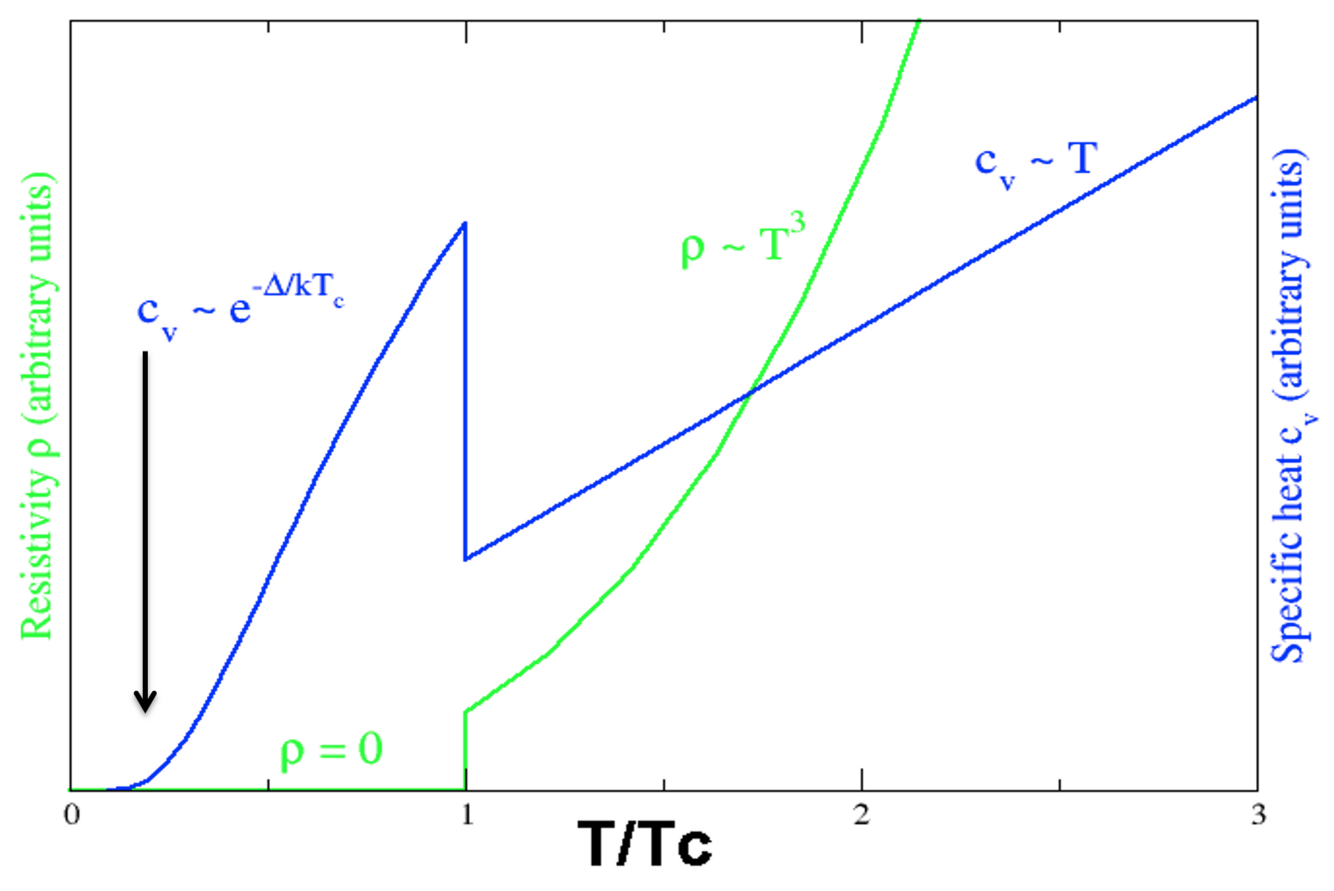 Describe the graph of the resistivity and the specific heat against T/T_c for a superconductor