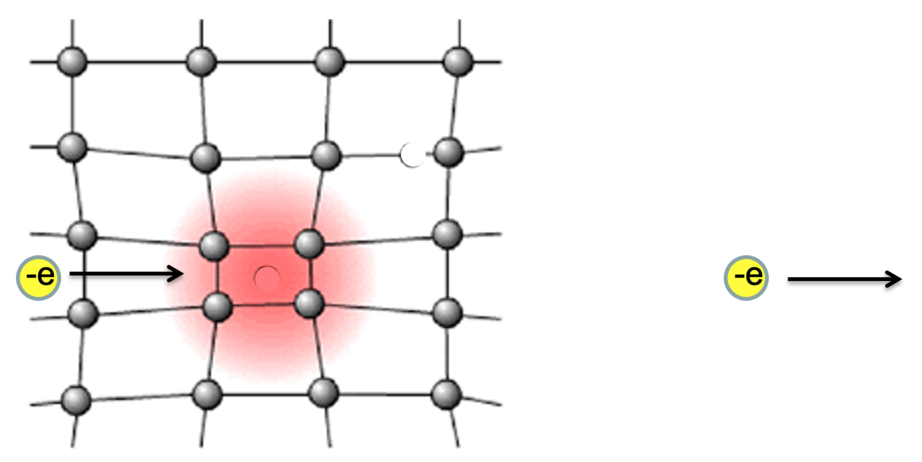 Describe how electrons can locally distort a crystal lattice