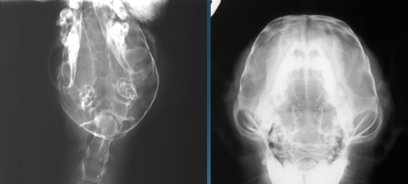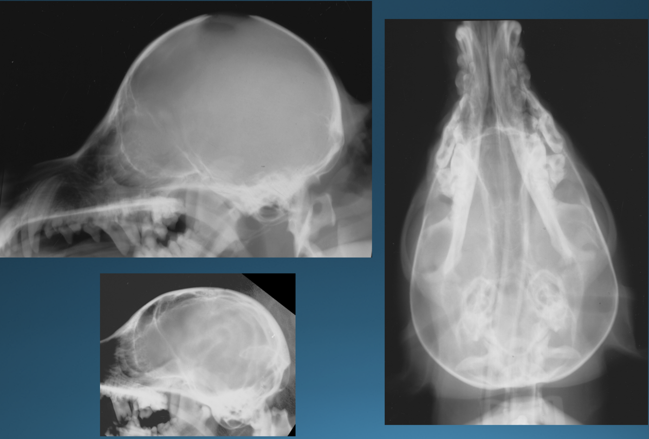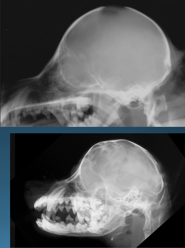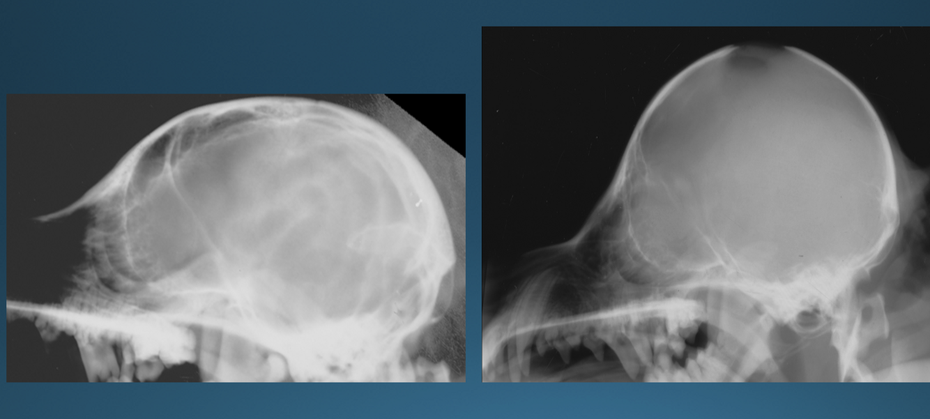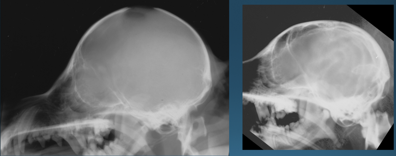-most severe radiographic signs seen when hydrocephalus develops before complete ossification of calvarium