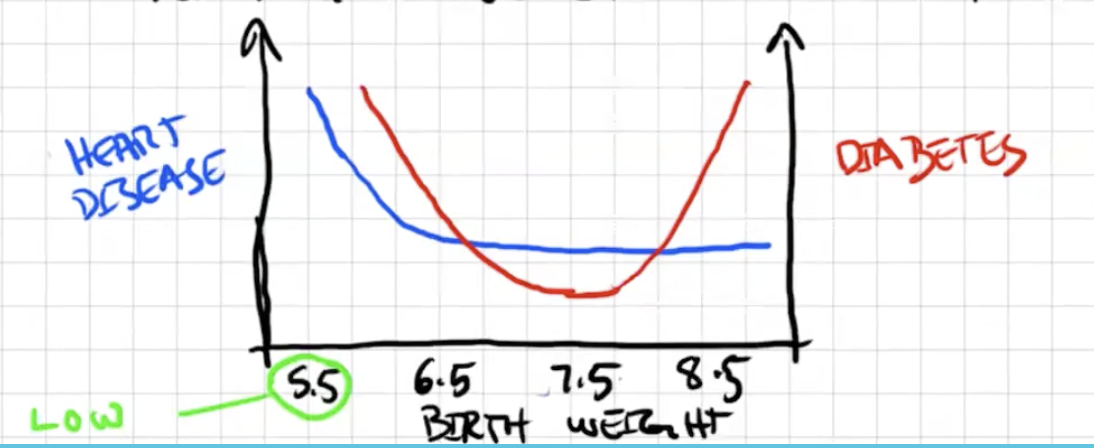 -Dutch Hunger Winter -children born during it had a high incidence of diabetes and heart disease bc fetus was very calorie thrifty and expected starvation conditions -environment mismatch with adaptations