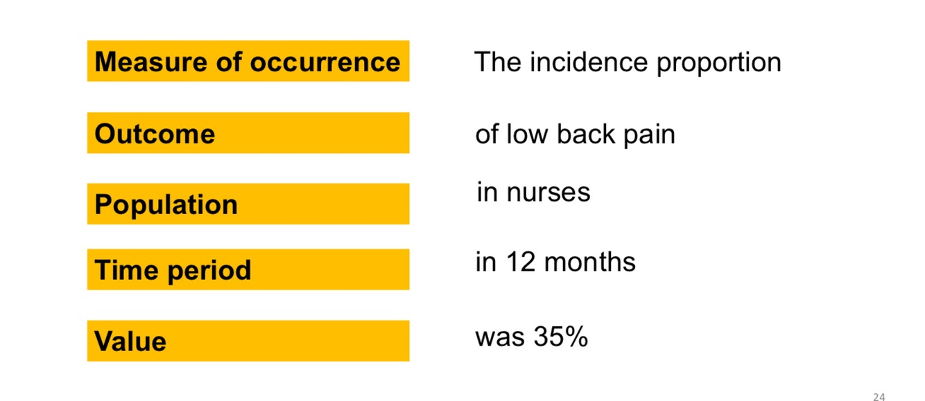 5 things needed doe incidence proportion reporting