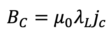 Give the equation for the critical field of a superconductor in terms of the London penetration depth