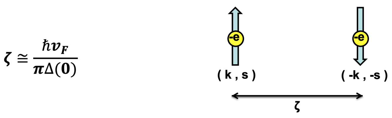 The average distance between electrons in Cooper pairs, based on the energy gap between the electrons at T = 0. It is also the shortest distance of which the Cooper pair density can vary.