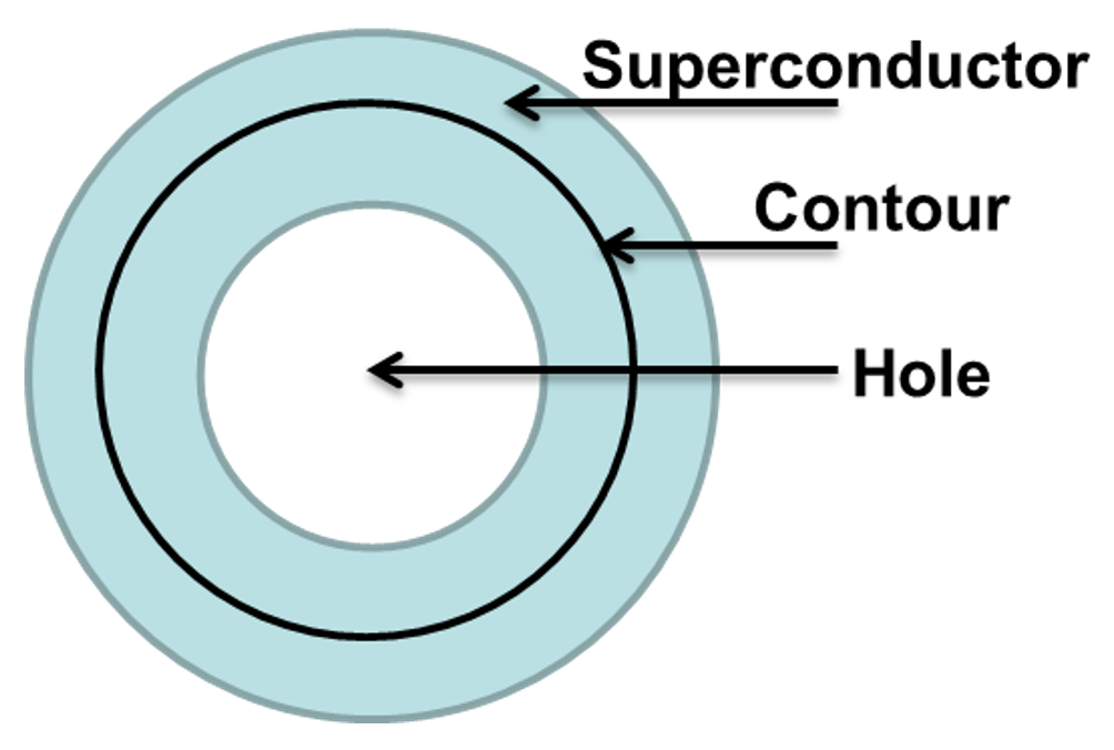 Describe the shape of a superconductor with dimensions greater than the London penetration depth that has a hole inside