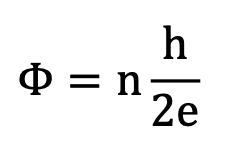 Give the equation for the flux through a contour of a superconductor containing a hole