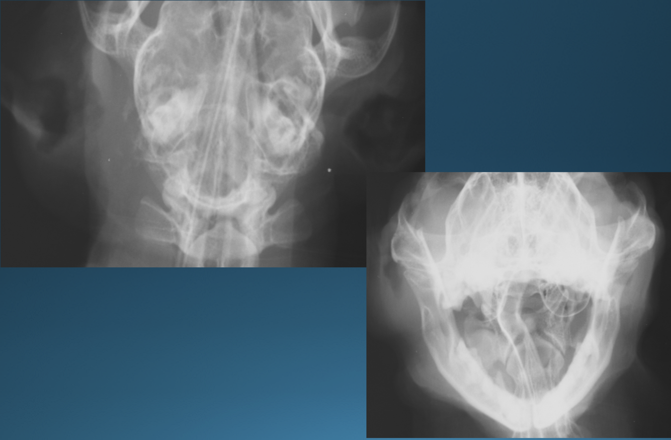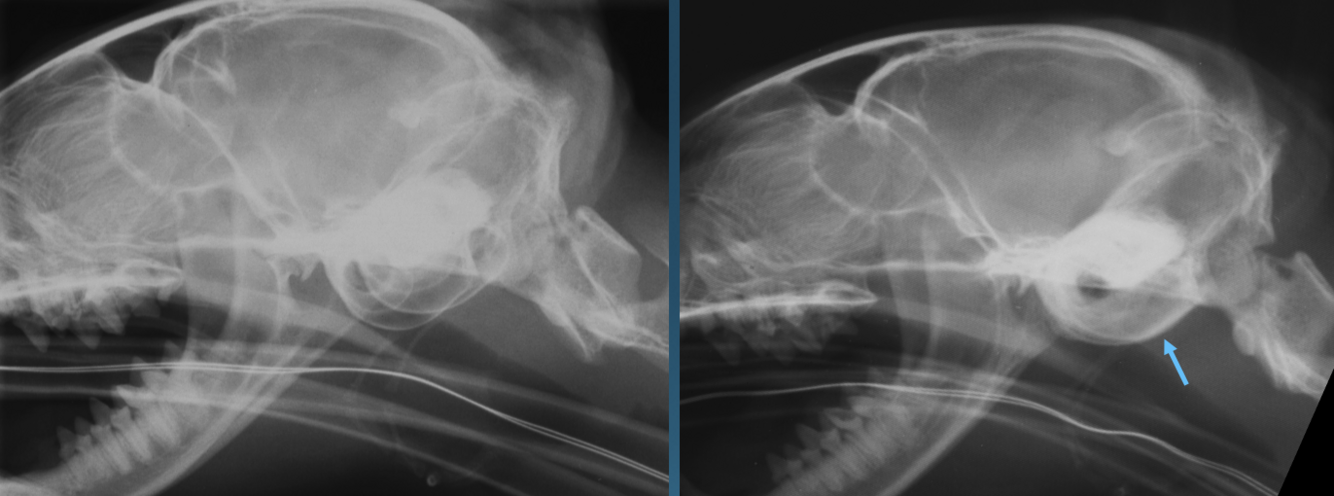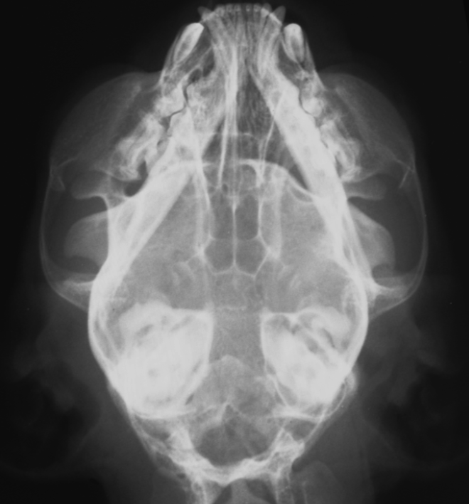 -soft tissue opacity within tympanic bulla