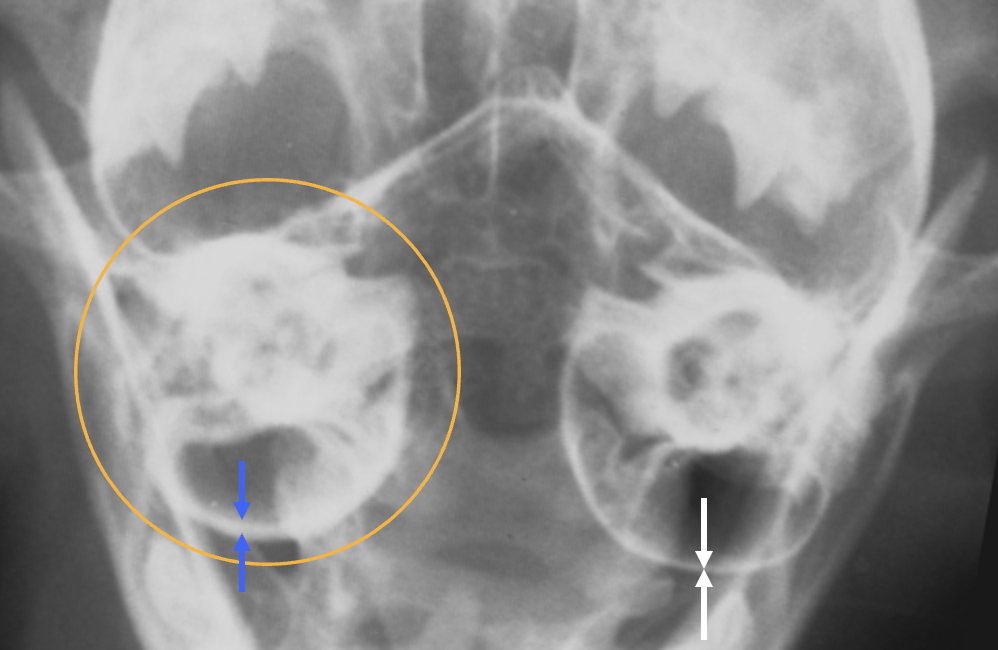-thickened right bulla wall compared to the left