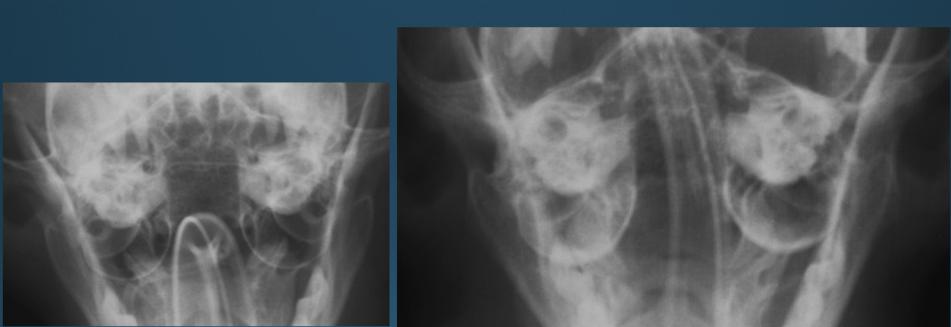 -can see mineralization of ear canal walls with chronic cases