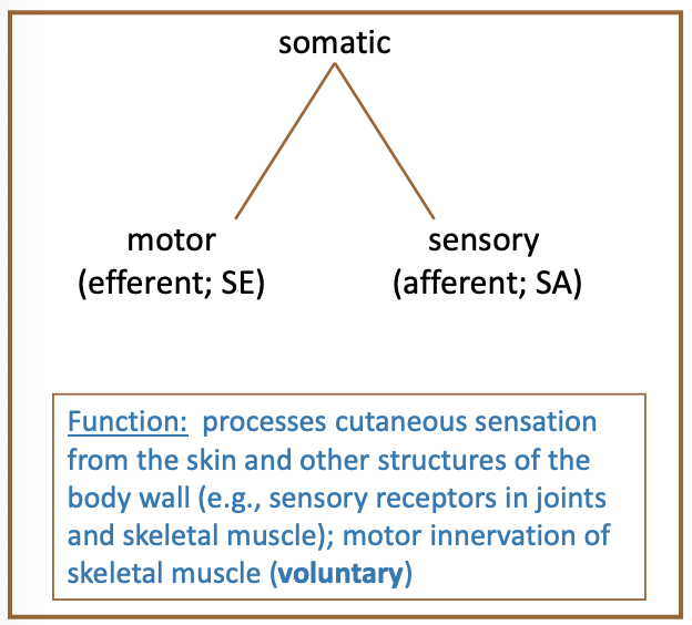 The somatic nervous system is divided into what 2 groups