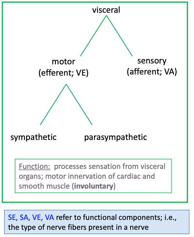 The visceral nervous system is divided into what 4 groups