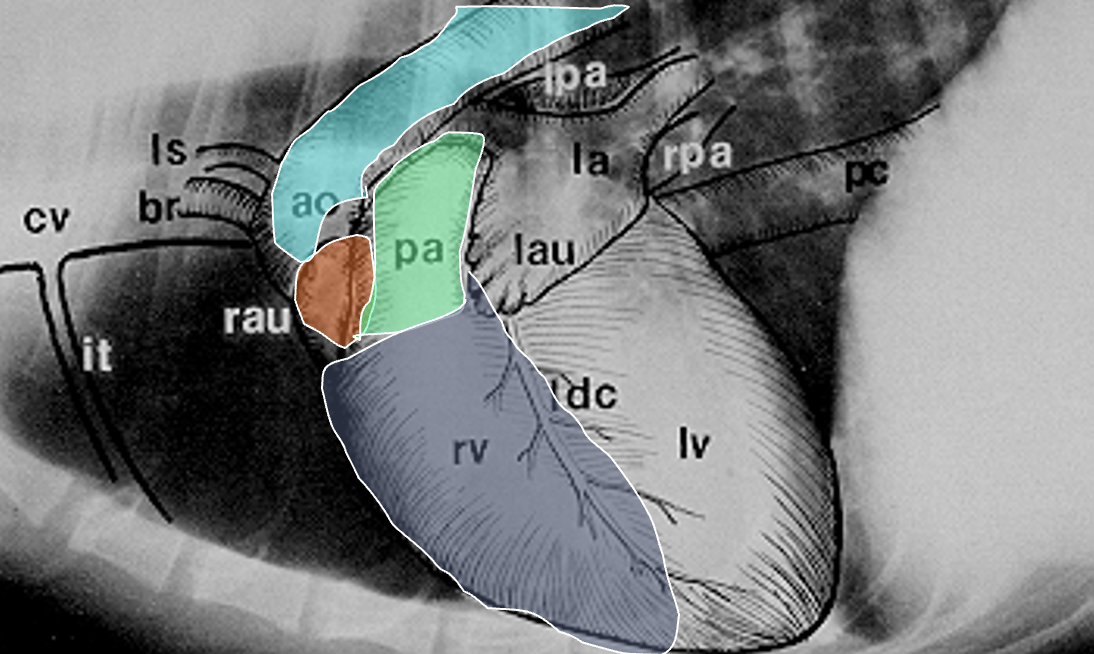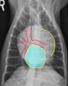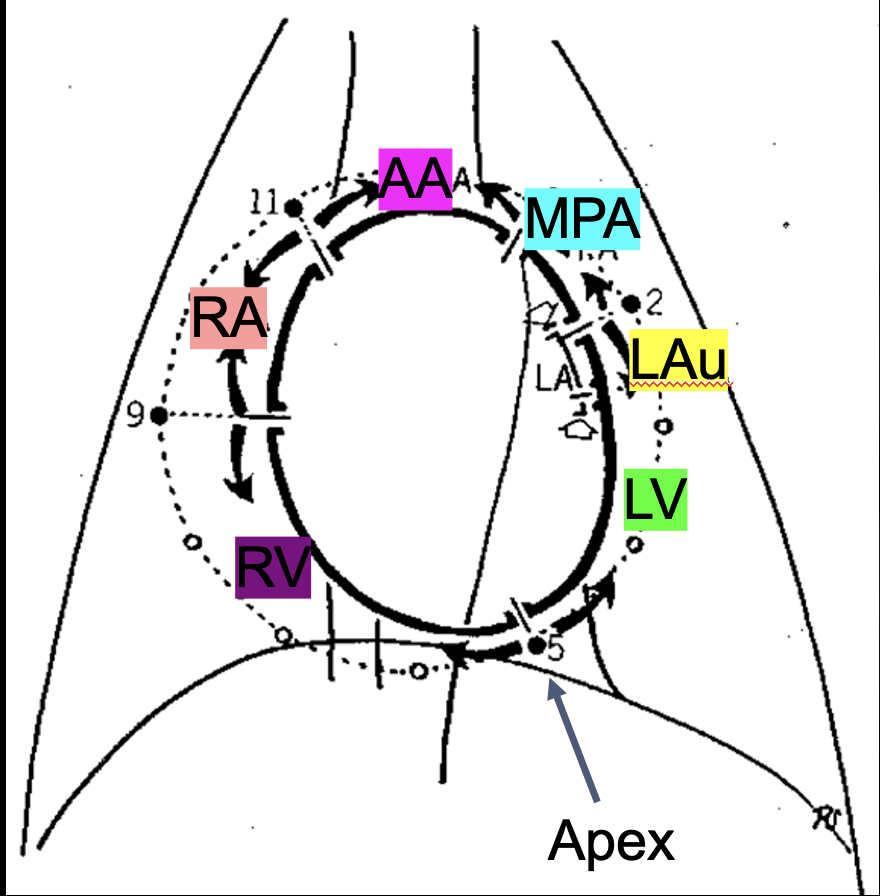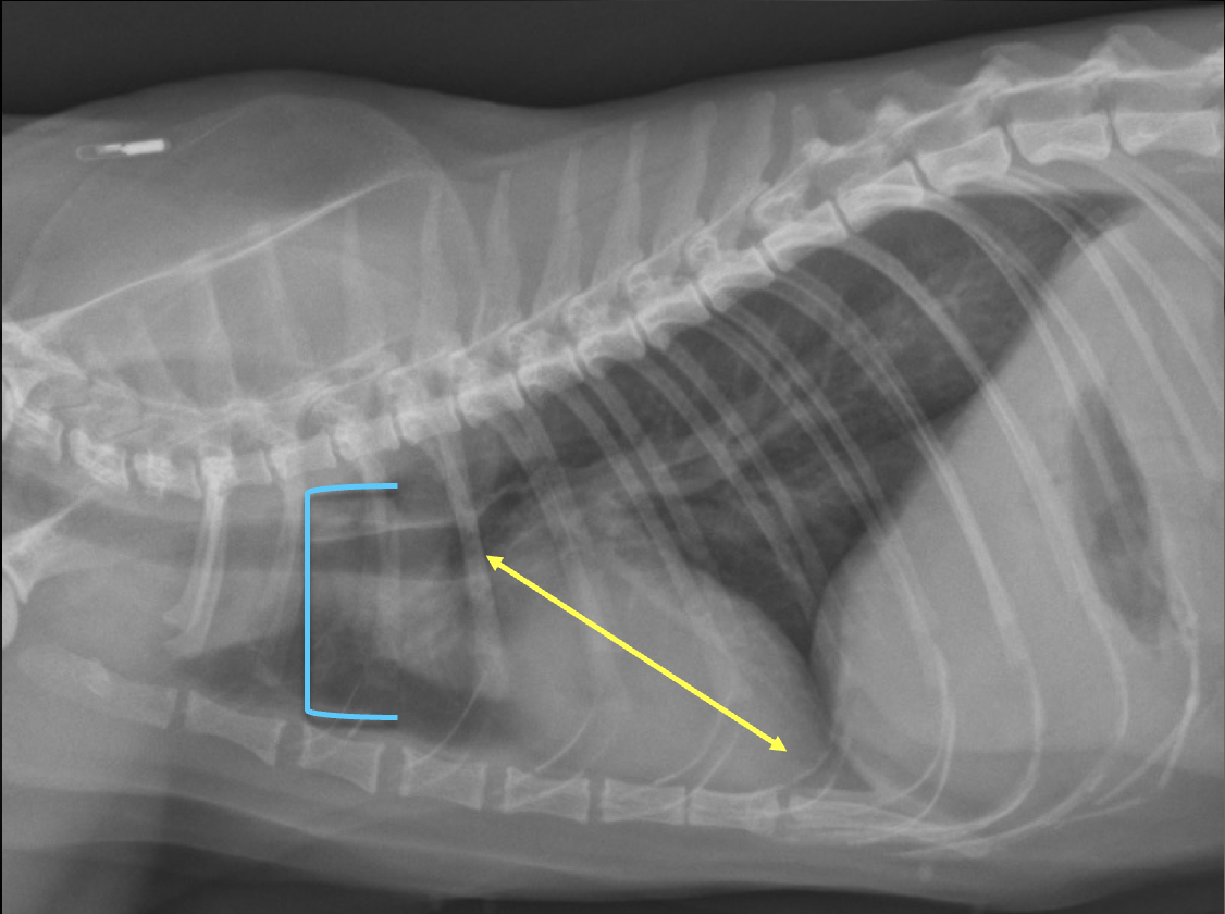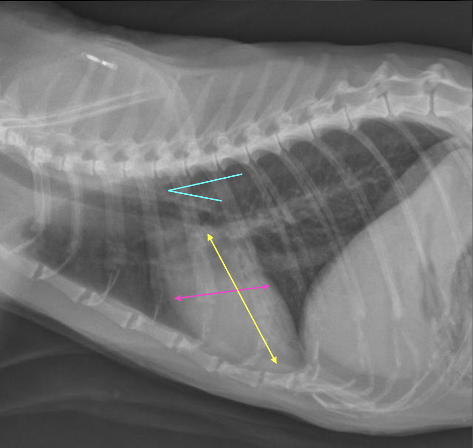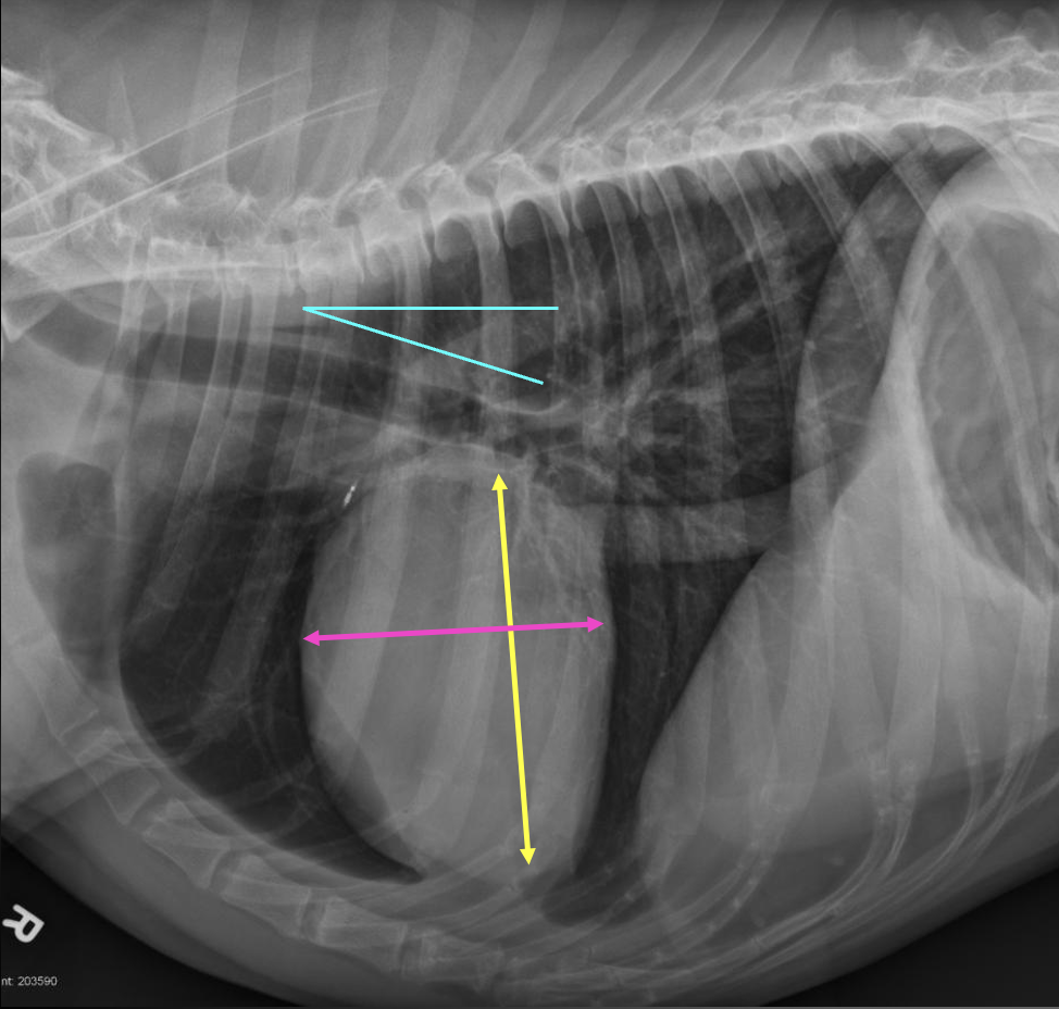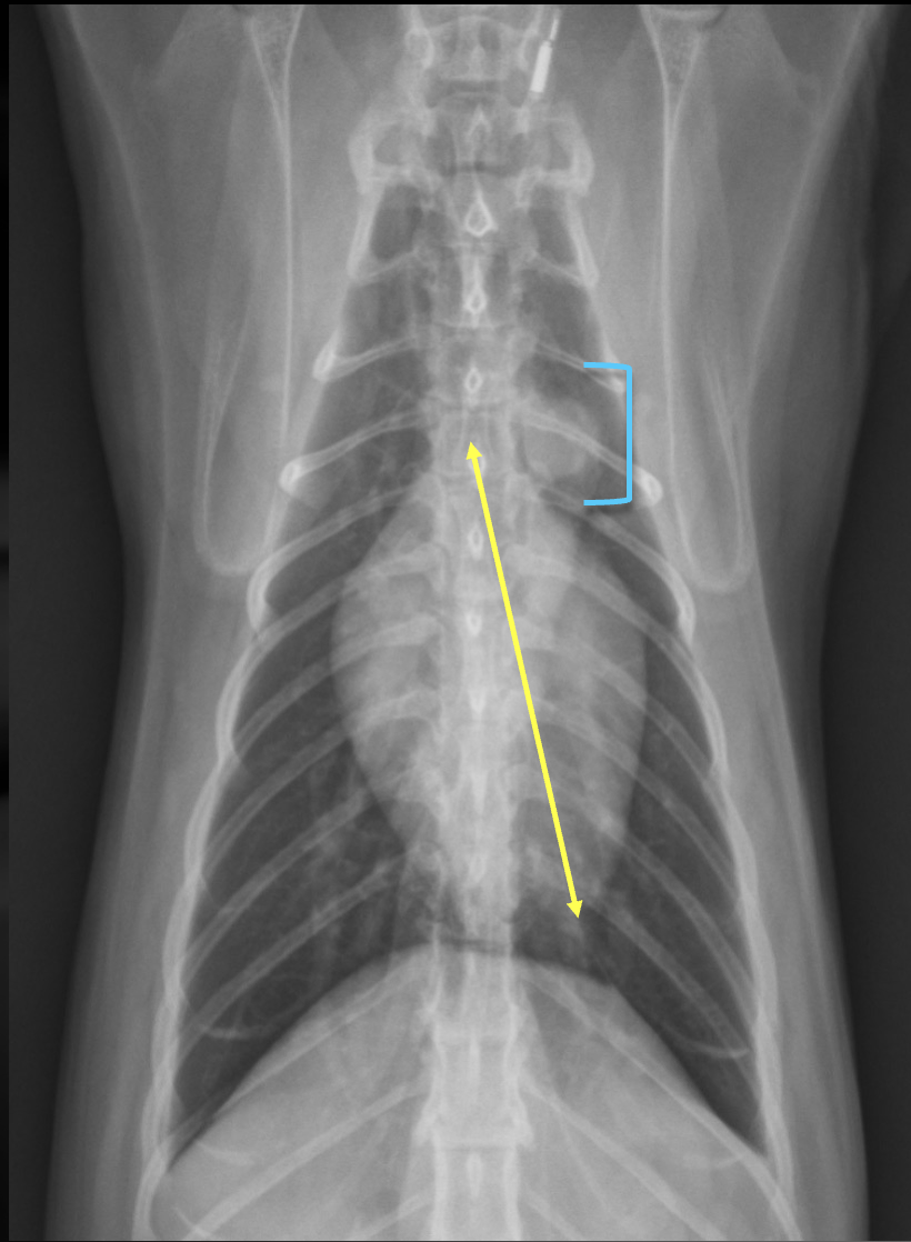 -heart height is 2/3 diameter of dorsal to ventral chest (yellow)