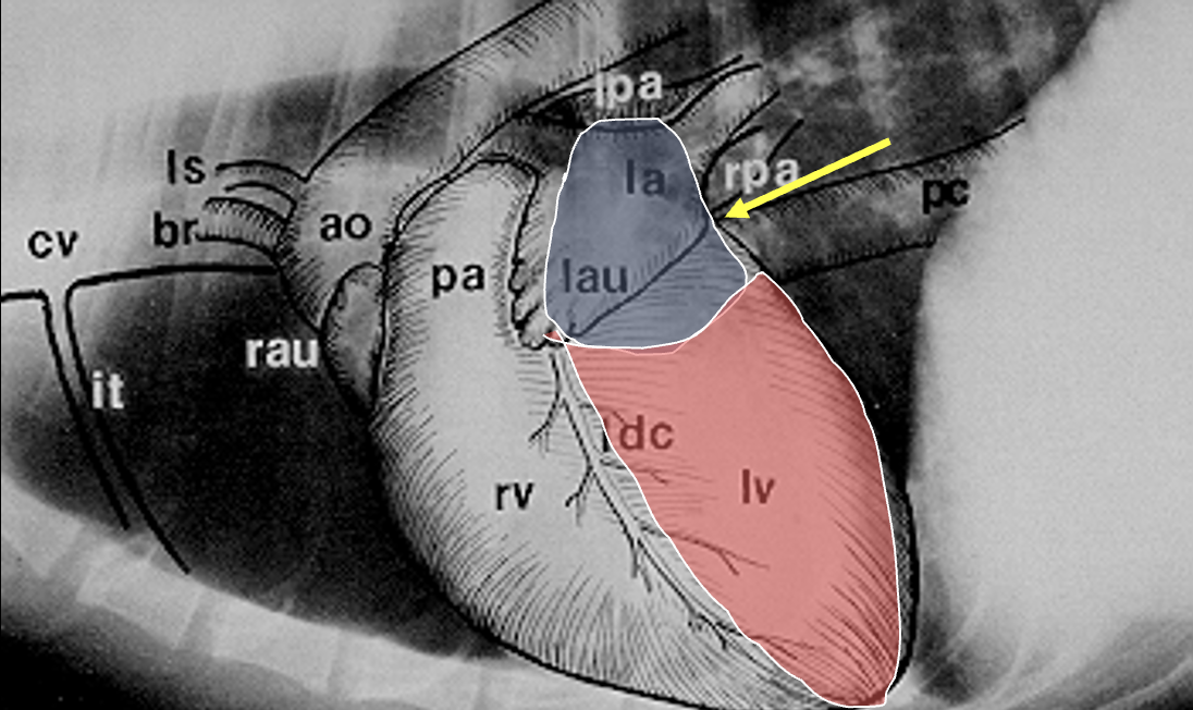 yellow arrow: sulcus at the junction of left atrium and left ventricle