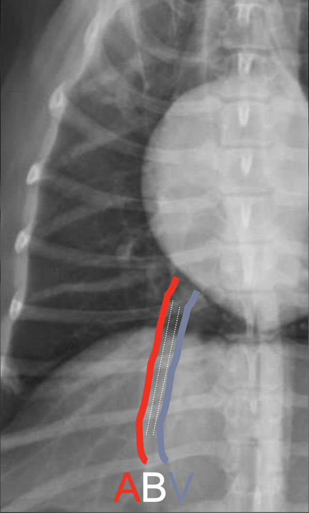 -right caudal pulmonary artery lies ventral to tracheal bifurcation