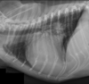 Which structure makes up the dorsal 1/3 of the caudal border of the normal cardiac silhouette?