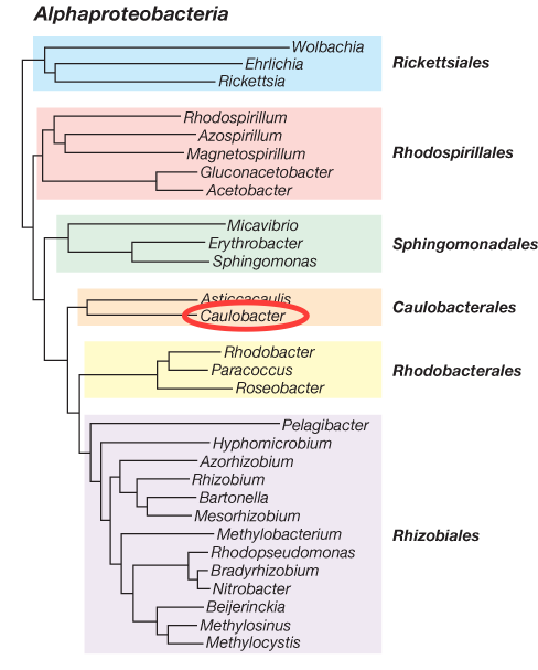 What class of Proteobacteria does Caulobacter crescentus belong to?
