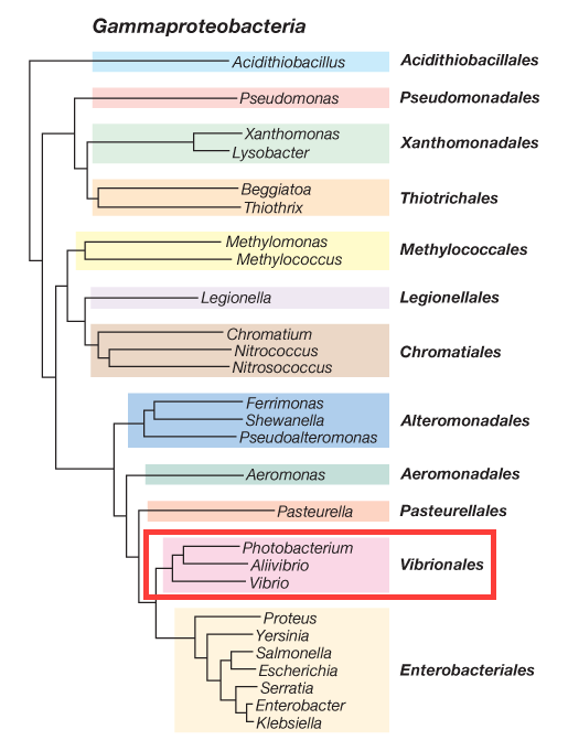 What class of Proteobacteria does Photobacterium, Aliivibrio and Vibrio belong to?
