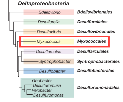 What class of Proteobacteria does Myxococcus belong to?