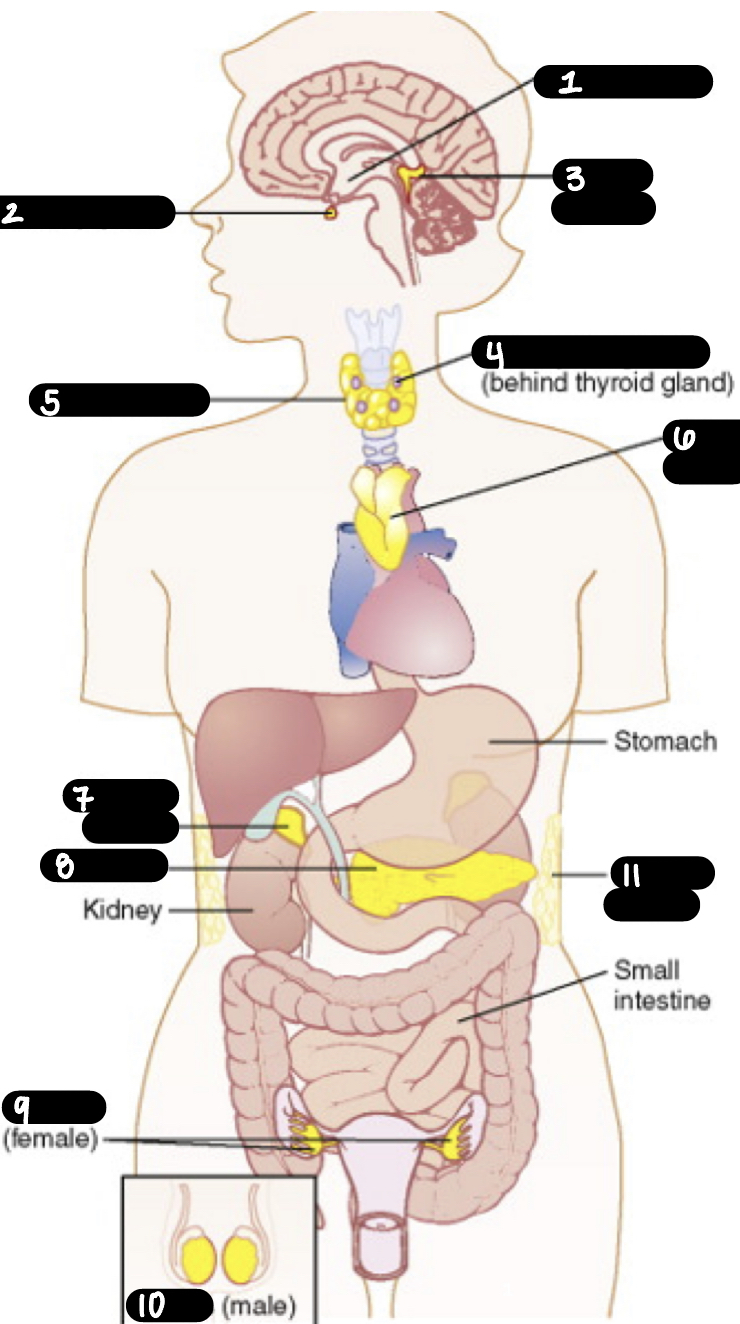 anterior and posterior pituitary gland, parathyroid, pancreas
