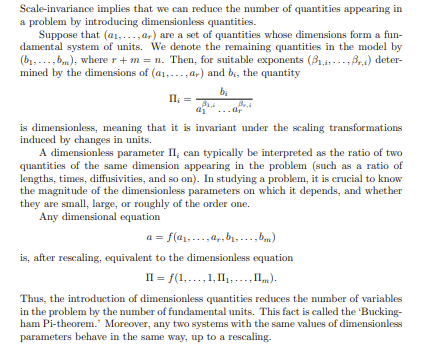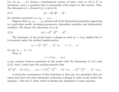 The numerical value of any quantity in a mathematical model is measured with respect to a system of units (for example, meters in a mechanical model, or dollars in a financial model). The units used to measure a quantity are arbitrary, and a change in the system of units (for example, from meters to feet) cannot change the model. A crucial property of a quantitative system of units is that the value of a dimensional quantity may be measured as some multiple of a basic unit. Thus, a change in the system of units leads to a rescaling of the quantities it measures, and the ratio of two quantities with the same units does not depend on the particular choice of the system. The independence of a model from the system of units used to measure the quantities that appear in it therefore corresponds to a scale-invariance of the model.