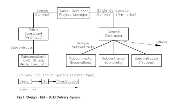 This system is typically the slowest in terms of concept date and final turnover date. In terms of risk. The owner is usually in a safe situation, monetarily wise, as they have been provided a firm contract price. The successful bidder is bound by the terms of the system and contracts included, so their estimates have to be very accurate, or they stand to lose a lot of money.