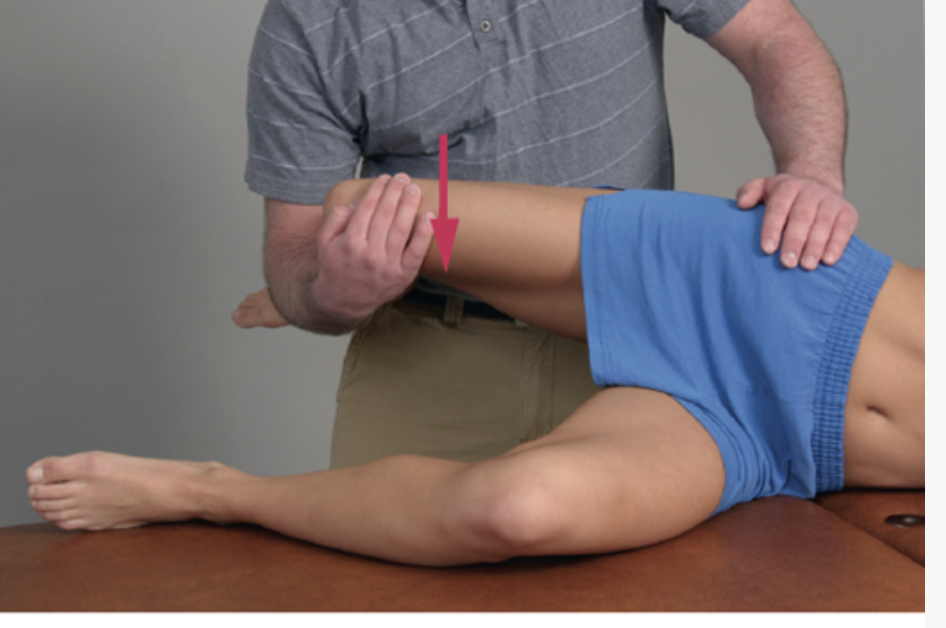 With the patient’s humerus supported on the table and the elbow flexed to 90°, grasp the distal forearm.