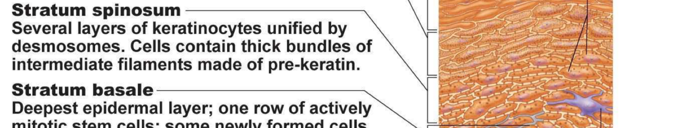 Stratum spinosum, made of keratinocytes unified (linked) by desmosomes