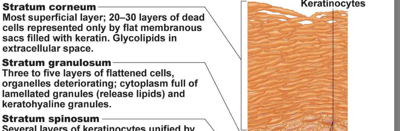 Stratum corneum, dead keratin-holding cells surrounded by GlycoLipids, enzymes, and hella other shit