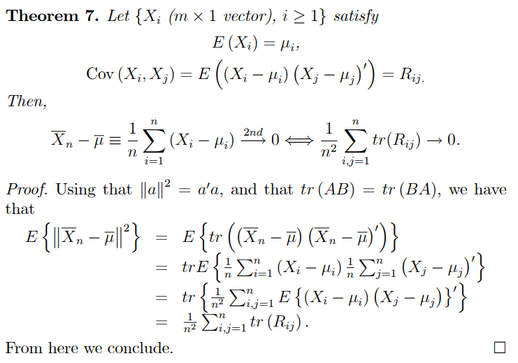 Assuming E|X|^r < inf and E|Xn|^r < inf, we say that Xn converges to X in r-th mean if