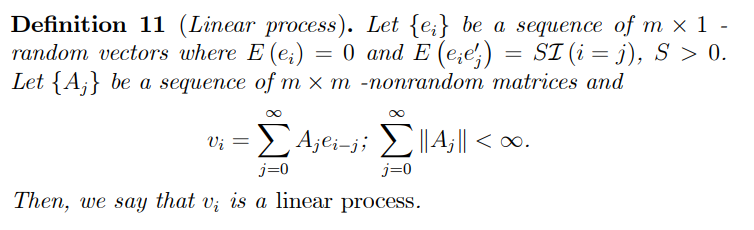 Given a sequence of non-random mxm matrices, ui is a linear process if: