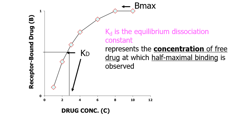 the equilibrium dissociation constant represents the concentration of free drug at which half-maximal binding is observed