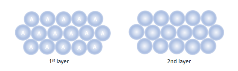 where do atoms in the second layer of the close-packed hexagonal layer of atoms exist?