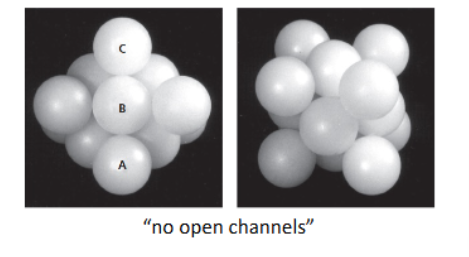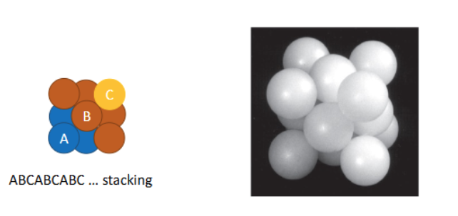 if the atoms in the 3rd layer of a hexagonal close packed go directly above the unoccupied interstices (C sites), what are the characteristics of this crystal?