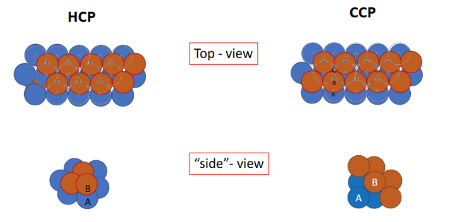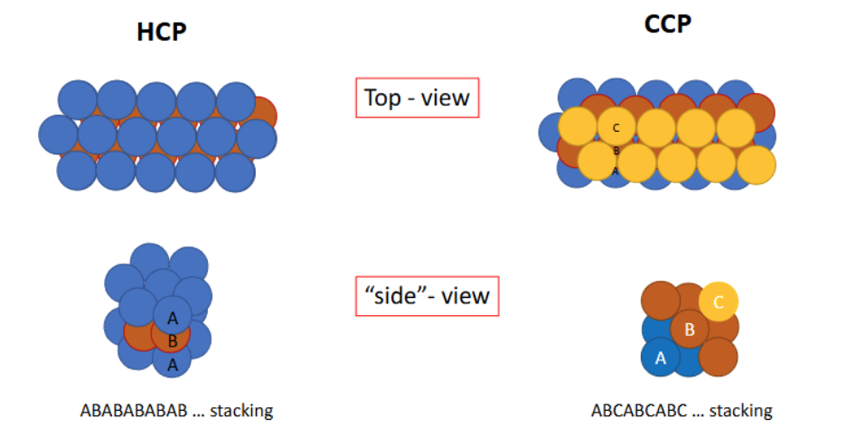 What is the difference between the top view versus side view of 2nd layer HCP and CCP