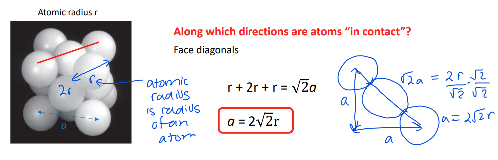 what is the relationship between a (lattice parameter) and atomic radius r in CCP