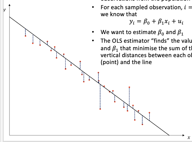 The values of B0 and B1 that minimses the sum of the squared vertical distances between each observation pointand the line