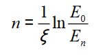 What is the equation for the number of elastic collisions required to slow a neutron from fission (E_0) to thermal energy(E_n)?