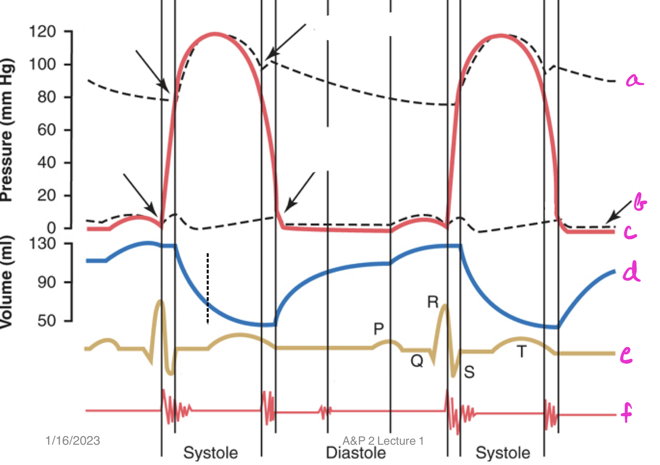 What valve(s) would you expect to open/close at the point indicated by 1 in the figure below?