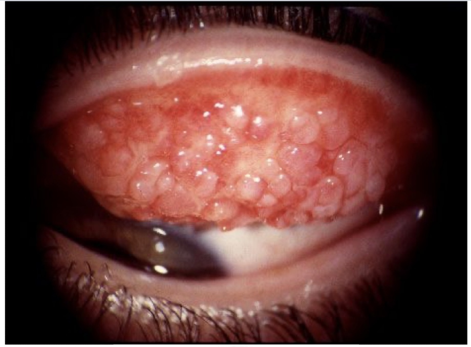 What PE findings suggest allergic conjunctivitis primarily over other etiologies?