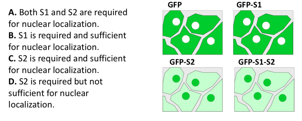 Correct answer is C, S2 is required and sufficient for nuclear localization
