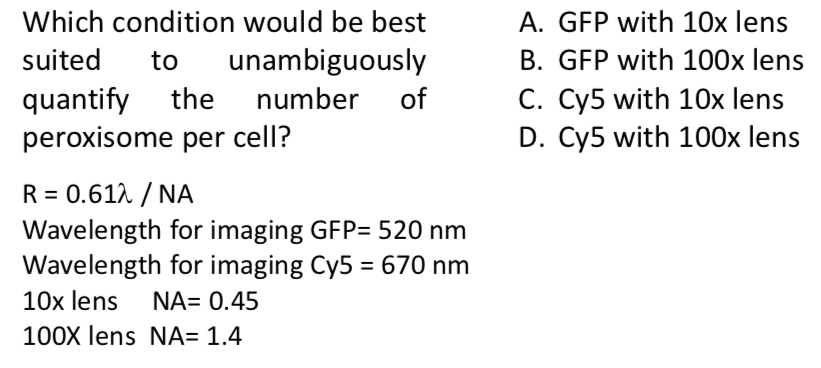 Correct answer: R= (0.61 x 520)/1.4 = 227nm