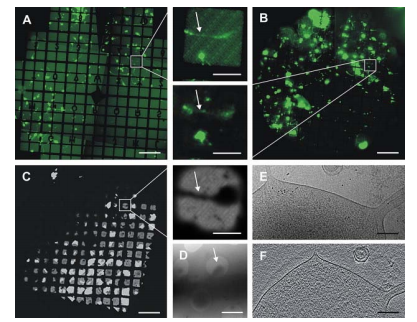• Instead of fluorophore, gold particles are used (gold is electron dense)
