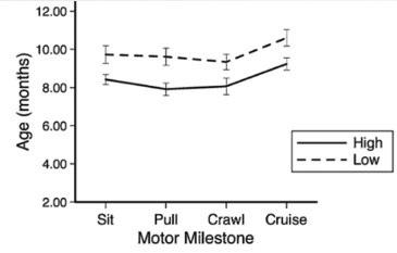 *Study: Compared low and high motivation infants on when they achieved motor milestones