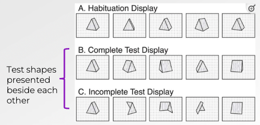 * Habituation: Presented with rotating object with only 2 sides visible