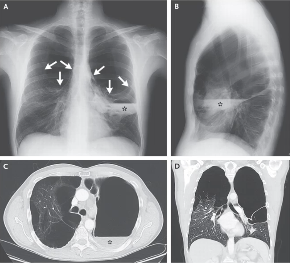 Risk factors consistent with Pneumothorax (Tall, history of COPD)