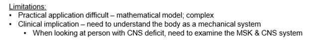 3) Distributed Control/Systems Theory: Need to understand characteristics of the system you are moving, the external and internal forces acting on the body, need to consider mass, gravity, inertial forces, muscles, skeletal systems, and many systems work together to achieve movement