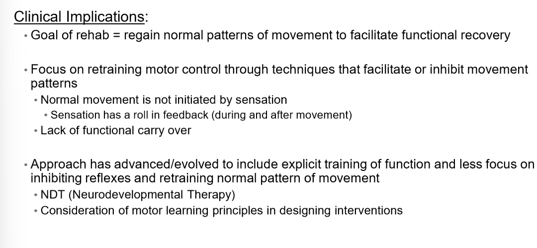 Combining the neurophysiological approach to the motor learning approach, what is our new focus with rehab of disorders