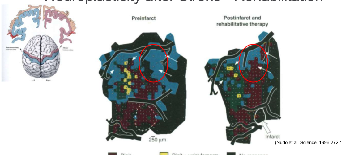 Does neuroplasticity increase or decrease from rehab following a stroke