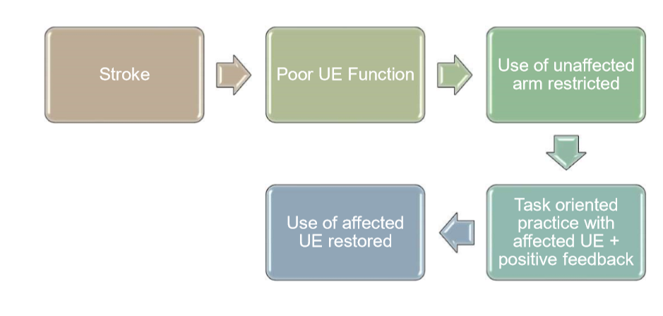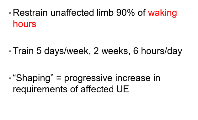Explain the 5 steps of the constraint induced movement therapy (CIMT)