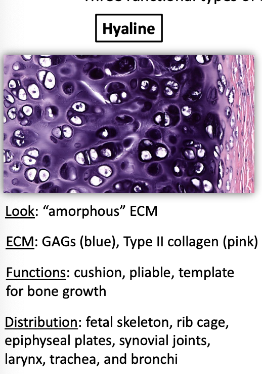 Look/ ECM/ functions/ distribution of Hyaline cartilage