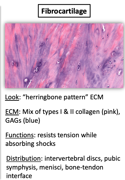 Look/ ECM/ functions/ distribution of fibrocartilage cartilage